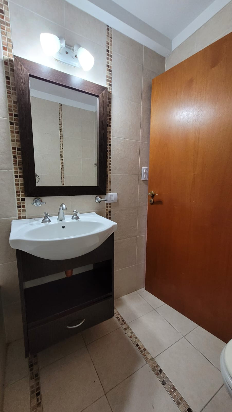 Baño completo con detalles de buen gusto.